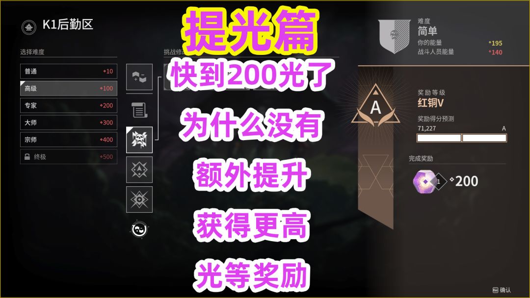 命运2提光篇快到200光了为什么没有额外提升获得更高的光等奖励