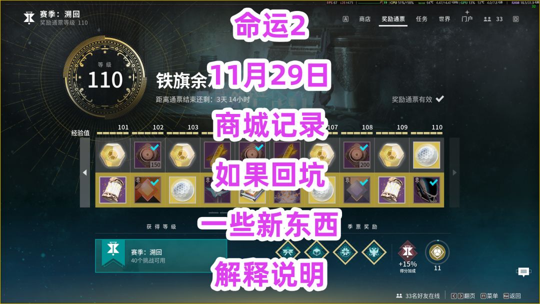 命运2,11月29日商城记录,如果回坑一些新东西解释说明