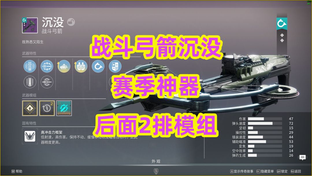 命运2,战斗弓箭沉没与赛季神器后面2排模组
