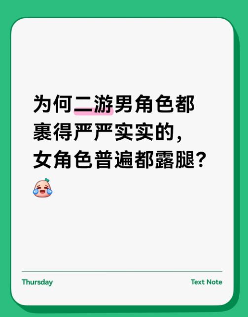 为何二游男角色都裹得严严实实的,女角色普遍都露腿?