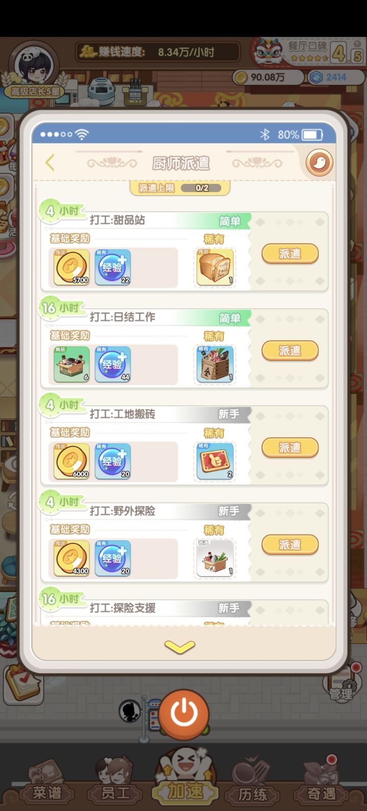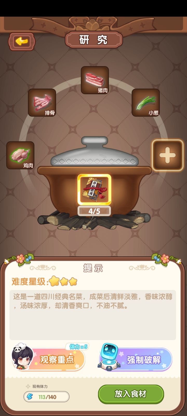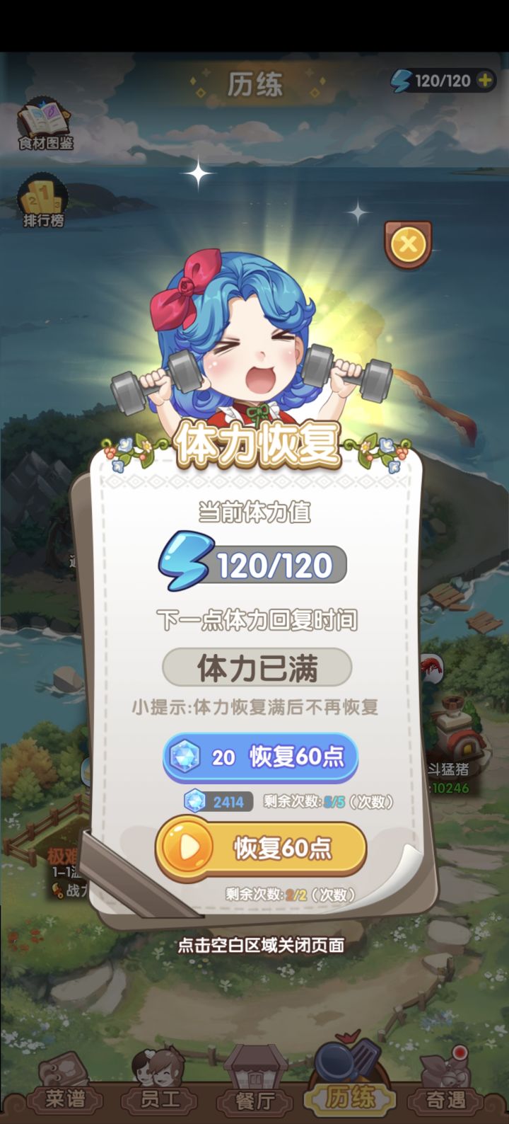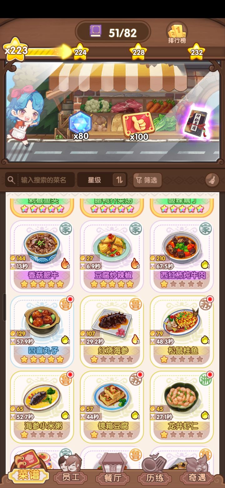 好不容易解锁了第12道菜,结果无论上哪到菜,收入都是大幅下降。另外,历练首次通关看广告后,钻石没有给双倍,材料是否双倍不清楚。