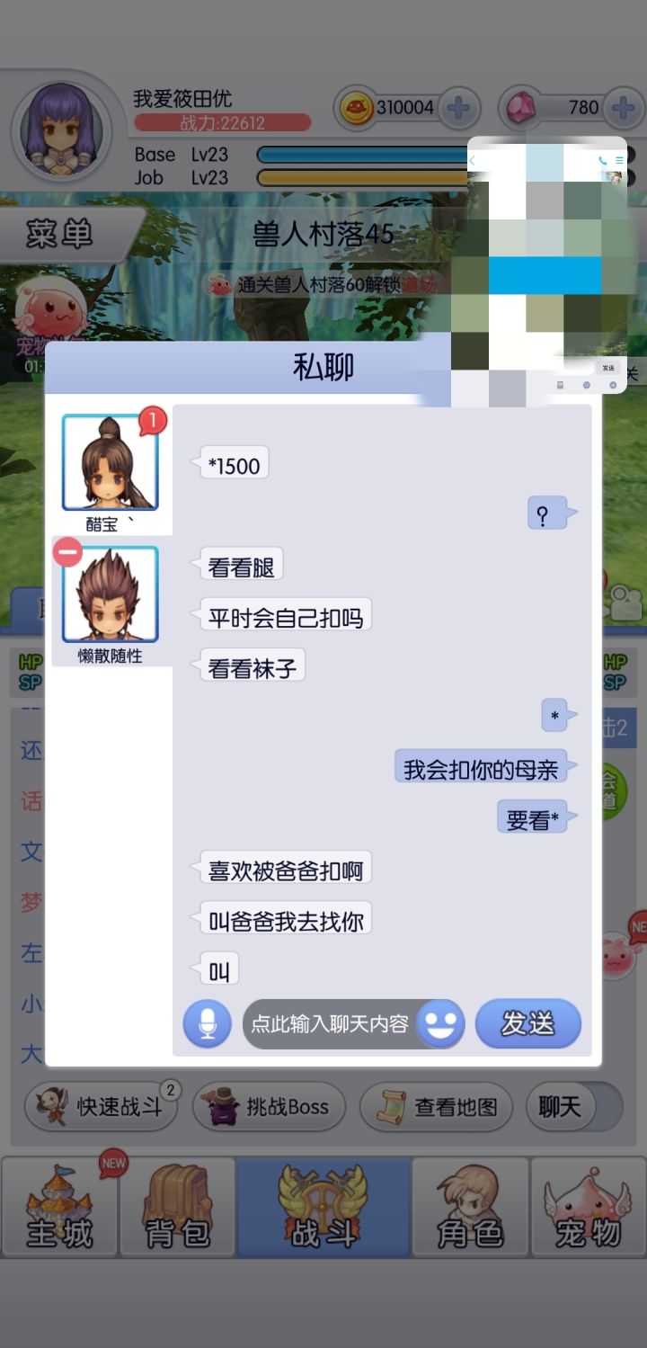 这游戏搞什么东西私聊串台不修复吗 举报功能也没有 然后就有这种猥琐男来恶心人
