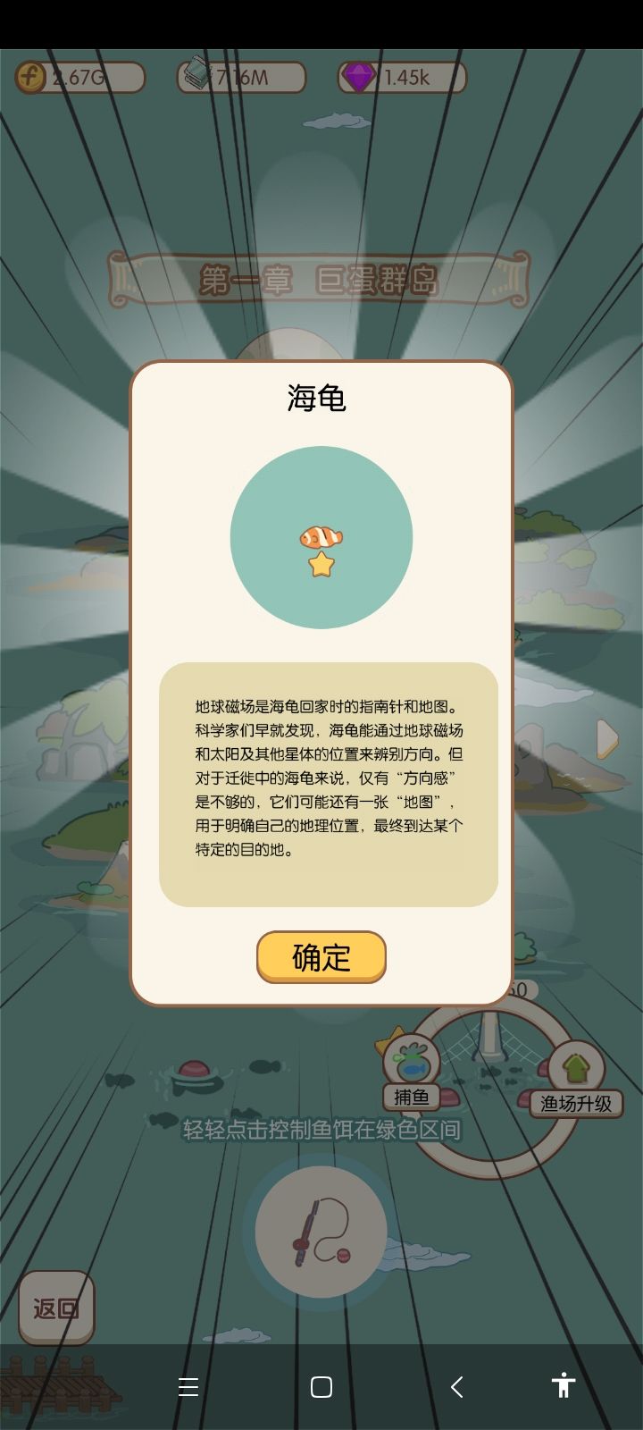 ⭐鱼谱的速度跟不上,升级鱼苗但是鱼谱还是20秒刷新一次,一次一张鱼谱,有点太慢了,影响捕鱼速度。⭐捕鱼才刚到第二章就打不动了,看了广告也打不动,希望能快点升级捕鱼器。