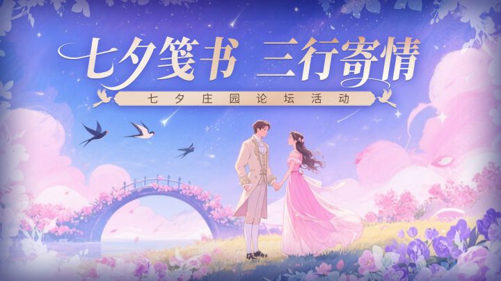 亲爱的庄园主: 星河清浅,鹊语呢喃,又是一年七夕至。 在这充满诗意的时节,《新庄园时代》邀您执笔抒怀 通过「三行文字」勾勒深情,为挚友,为爱人,为庄园,为那些值得珍藏的瞬间 书写心动篇章。 三行短笺,亦可载动千言万语。 愿您以笔尖的温度,镌刻这个七夕最动人的记忆。 —— 新庄园时代项目组 敬上8月29日 - 9月4日开奖时间:9月4日在本帖下方回帖,以三行诗的形式(字数不