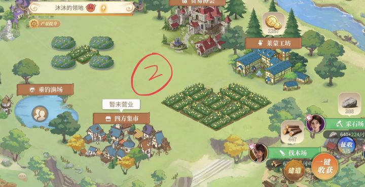 首先,目前领地不建议开垦太多,来自我血的教训:不划算!!影响后面城堡、农场、牧场的升级,缺木头!! 我目前搭配了三种,仅供参考: 搭配一:只开垦河流上面的小块地方,如图AB,(有点不好的是,默认进入领地会在中间位置,需要往上划一下) 搭配二:只开垦中间大片位置,又不想摆放花费的时间太久,如图ab, 搭配三:开垦中间位置与右边阶梯下的位置,留空间给后面新获取的建筑,如图①②③。 有其他好的