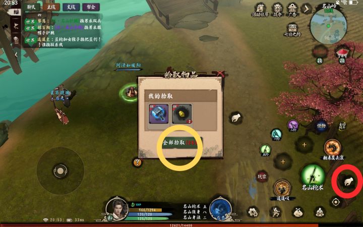 首先请看红色圈,拾取掉落物品时按红色圈拾取很方便,但是需要伸手指去点击黄色圈确认拾取,由于我用平板玩游戏,导致每次伸手指时都需要很大的动作,不知道策划大大们可不可以把红色圈那个拾取功能增加一个再次点击确认拾取的功能。麻烦啦。