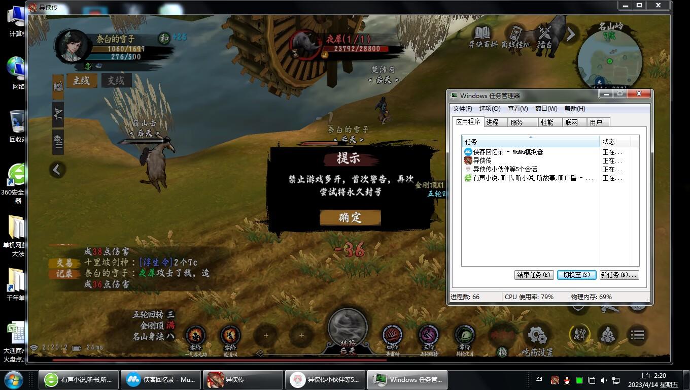 我没有多开刚给我断网 然后点断线重连提示不要多开 下次会永久封号? 能帮忙发电脑后台截图给官方看看么?我电脑界面就开一个异侠传哪里来的多开???#bug反馈
