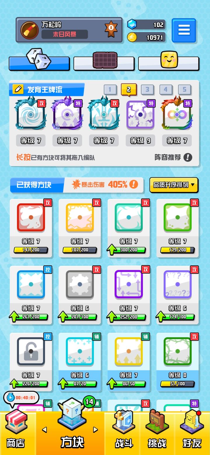 4.到第三轮可以开始把一星的方块合掉,提升总强度。