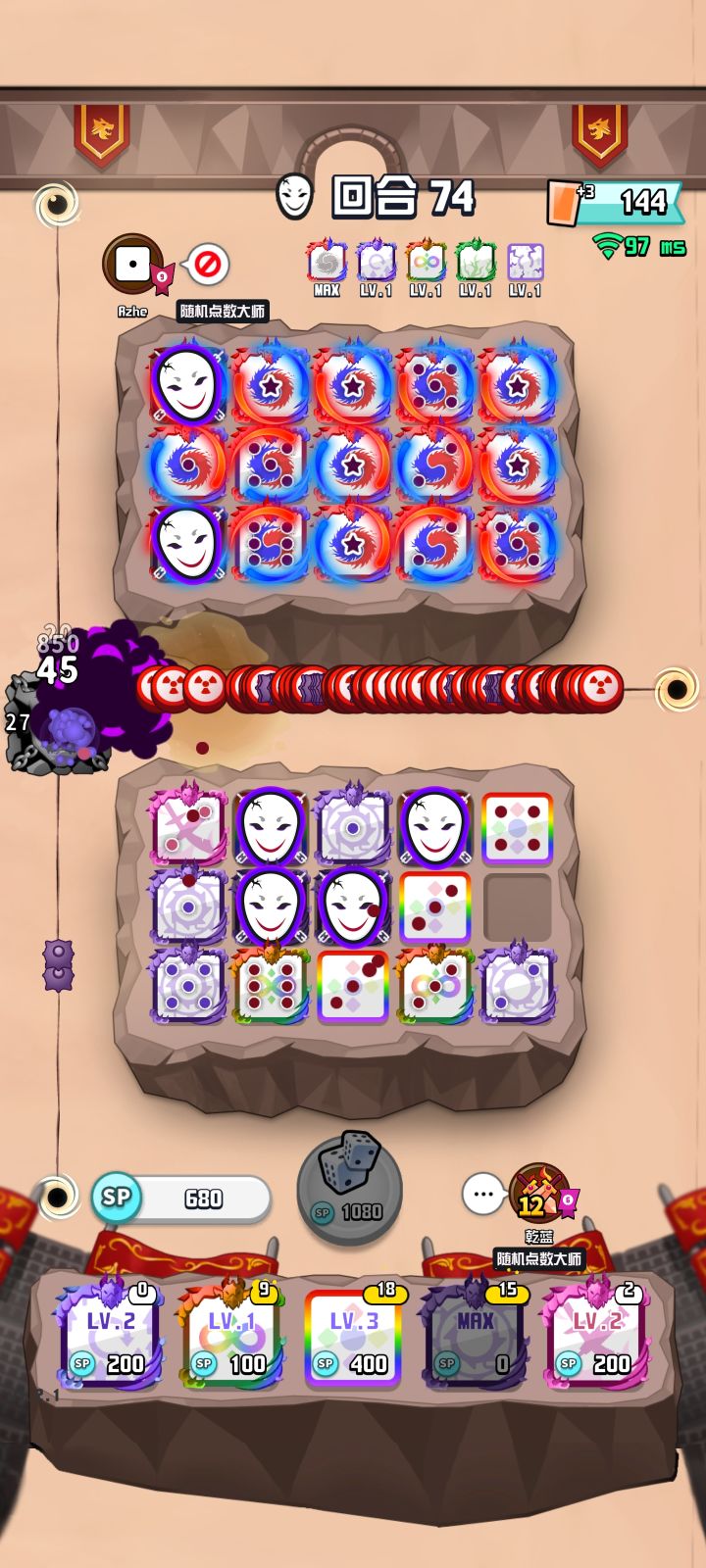3.开局尽量复制成长,把一星暴雪,原子互换。适当留5到8个台风总星级去打BOSS,当出方块sp消耗到90-120之间一定要先升一级台风
