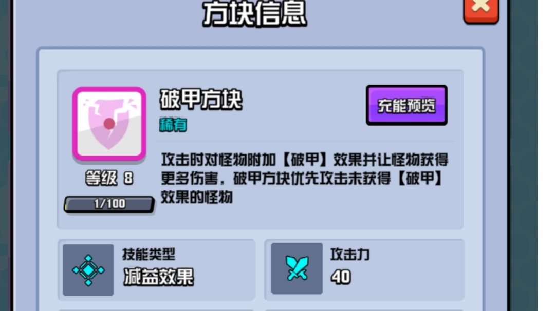 反馈一个bug,破甲方块介绍说是优先攻击未获得破甲效果的怪物,但实际并没有。希望反馈有奖励。😈
