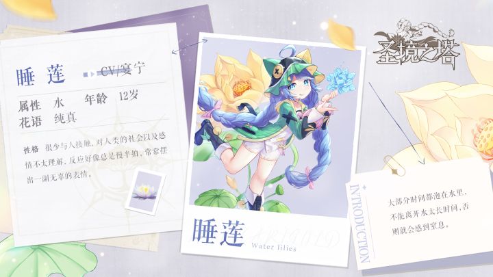 冒险者们好呀,莫古又来分享花灵故事辣!各位细心的冒险者应该也发现了,每位花灵的往事都是卡巴拉历史的一部分,因此一些花灵的故事还会有所交集哦~而今天,就将是一位与上期故事息息相关的花灵登场哦~想看上期的冒险者们可以点击传送门:那么事不宜迟,马上有请我们今天的主角——花灵·睡莲登场!相信冒险者大人们在游戏早期释出的PV和海报中,已经见过睡莲的身姿。每次莫古看到睡莲都处于半睡半醒的状态,给人一种
