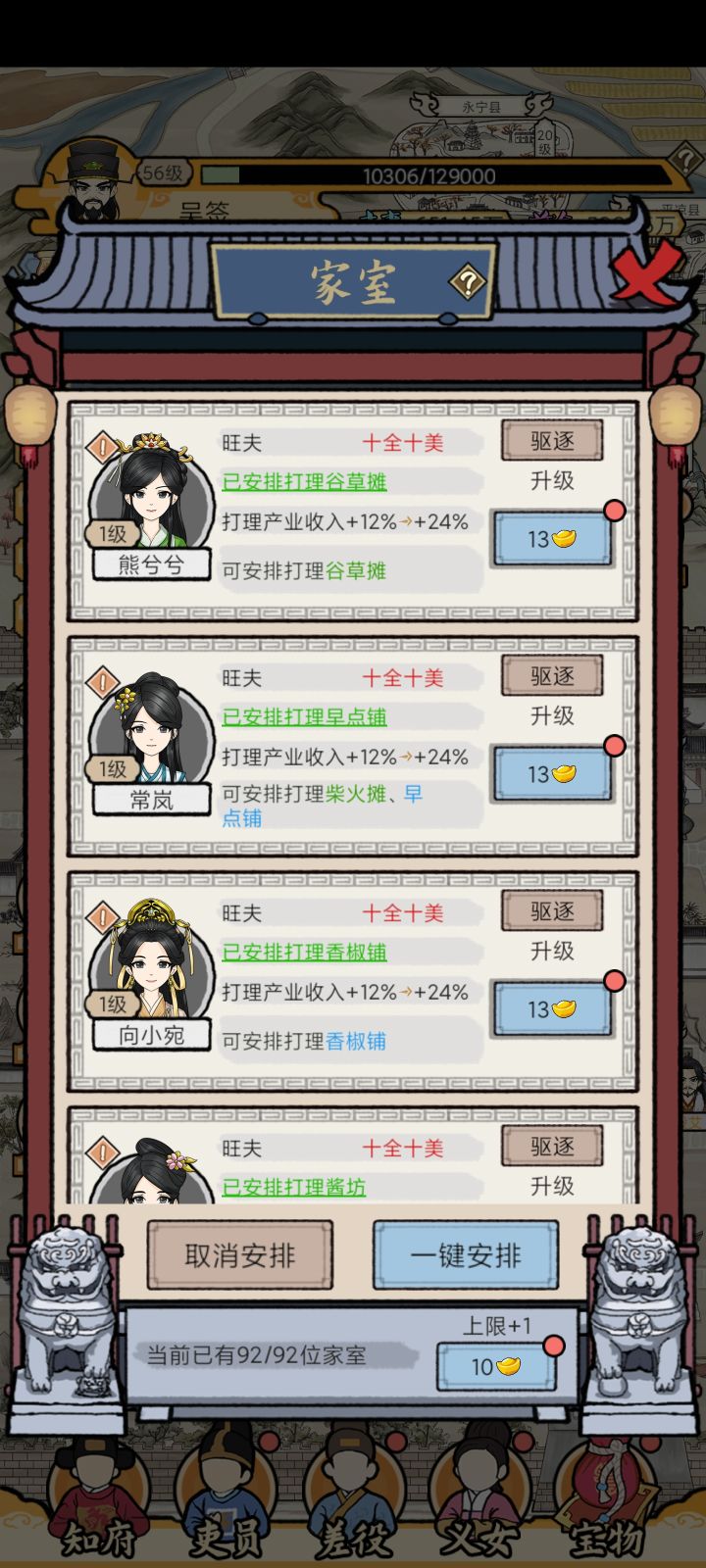 1、家室功能内,当人数多时,无法快速有效的进行检索查找;一键安排不够合理,比如不能合理安排至经济较多的产业中,手动调整才可安排到最合理化,经济最大化。望开发组优化一下算法。
