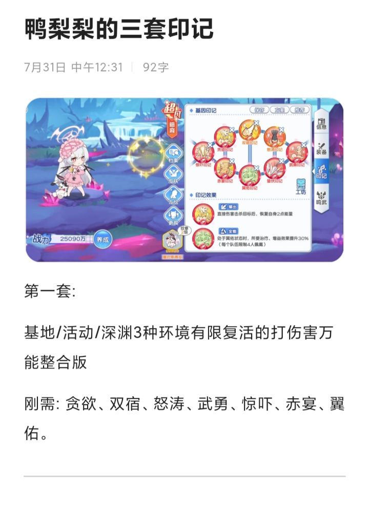【二周年攻略】亚莉莉不同场景下的印记推荐