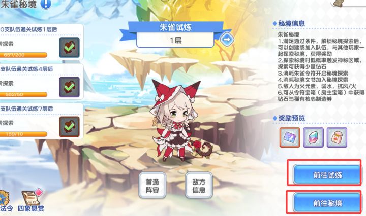 联机玩法40级开启。四象秘境分为朱雀秘境和白虎秘境,以当前开放的朱雀秘境来介绍一下怎么玩和注意点。朱雀秘境共有两种联机玩法,分为:试炼和秘境探索。一.试炼组队车轮战,不消耗道具可以无限打,需要三人组队缺一无法开启试炼。注意点1.当建好房间时需要点发布招募(如下图)才能在大厅显示,否则会隐藏,只能通过房间id进入;2.(只修一半)大家在大厅有时会遇到挂机房bug,遇到就退,因为偶然会发