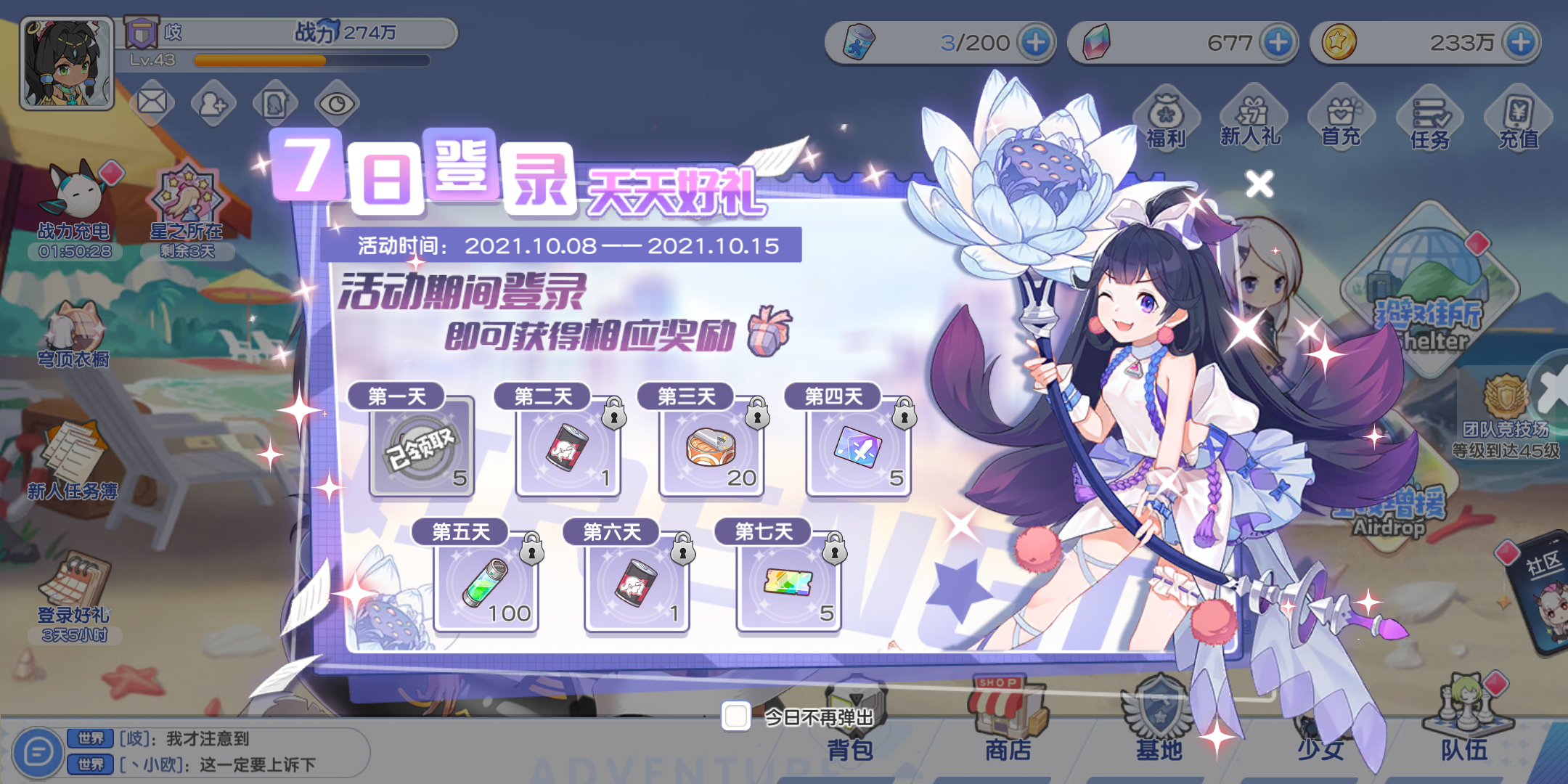 我玩了有四天了,这样看我应该是8号入的,哎就是这么巧,八号就有个签到七天活动,今天我在聊天时才发现有人说这个签到问题,我看了后才发现刚签到一天,这就很迷惑了,今天才显示8号的七天签到活动?😅我只是想吐槽一下,其实刚才我也是看聊天才发现的,希望能改一下吧,或者…下次策划能注意注意,别再干这种事了,真的是让新玩家难受得很第六第七天的奖励领取不到了…唉,麻了