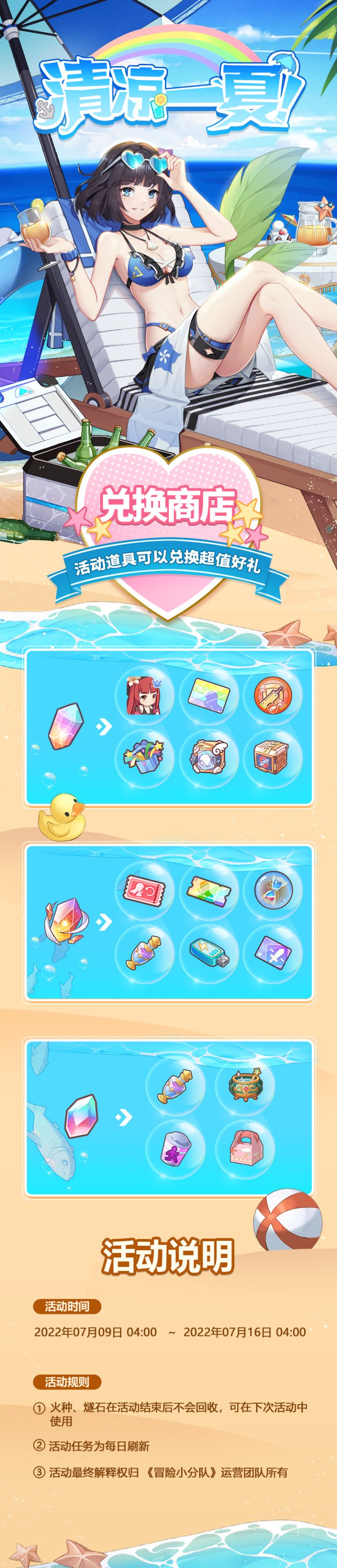 活动公告 | 夏令活动即将开启, 收集道具兑换稀有奖励!