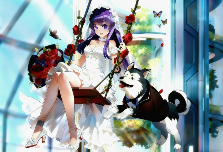 #绿洲女神大赛 玫瑰缠绕的秋千上,紫发少女指尖轻碰花枝,裙摆随微风轻晃——她是冒险家小纯,身边永远跟着穿礼服的猎犬哈尔。“比起和人打交道,还是哈尔更可靠~”她笑着把玫瑰别在哈尔的领结上,眼底的狡黠藏不住冒险途中的鲜活。#如果说冒险是她的勋章,那哈尔就是她最柔软的铠甲。这样带着玫瑰香气的冒险家小姐,谁能不心动?