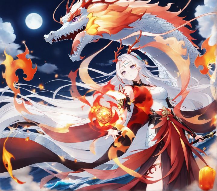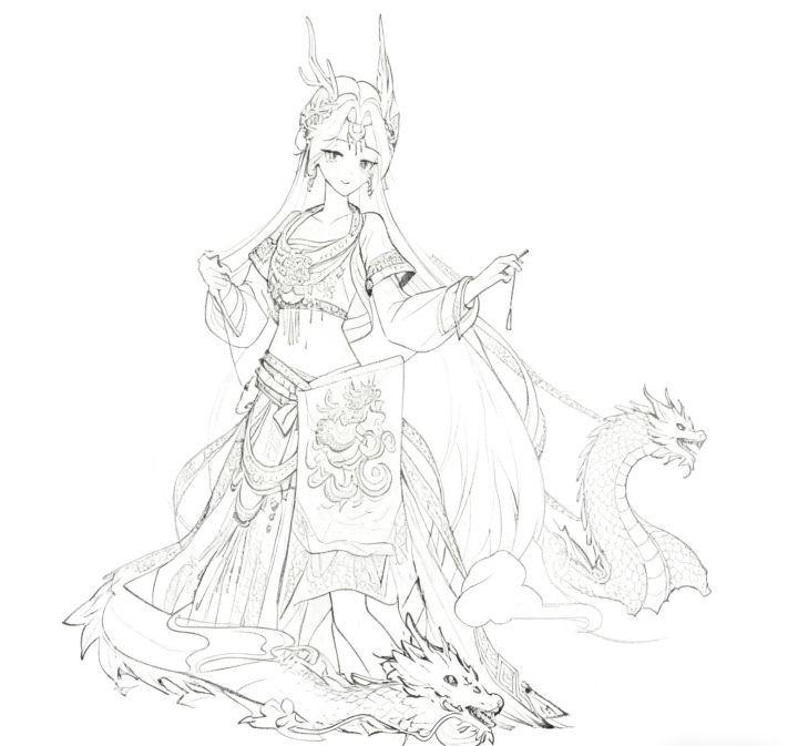 #绣绘山海二创大赛 #冒险小分队 #冒险小分队活动 #冒险小分队周年 #冒险小分队再再再出发 #冒险小分队再出发创作征集令 #冒险小分队周年庆 #冒险小分队二创 名称:烛龙•曦月-龙渊仙眷白发如雪,衣袂翩跹,她是游走于仙凡之间的龙语者。以绿、红、白三色织就的华美汉服,缀以腰间赤龙纹丝带,暗藏驭灵之契。身侧白龙盘桓,龙瞳威严却低首相依,龙息与她的掌心光球交融,共演天地共鸣之力。背景烟粉朦胧,似梦