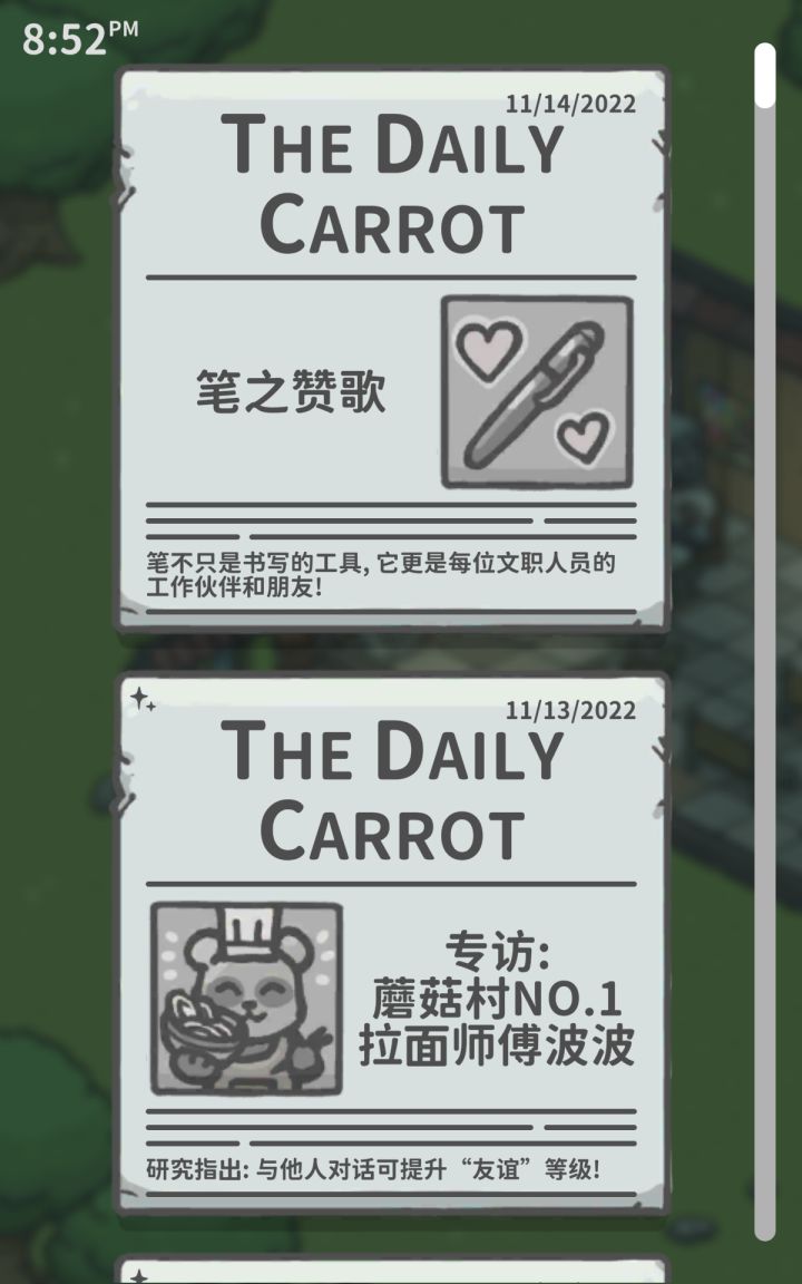 国服真的是bug百出,图1的报纸事件是昨天的了,昨天一直触发不了,今天才触发。当天的笔的对话也没有触发。和艾菲的合照对话当时没有触发,我换了几个地方就突然触发了(对话的地方是在商店,看背景,到了公乡所才出发图片)想去国际服,但是玩的人少,要去🍑买,并没有全汉化,还要重新打剧情。要是有bug也不知道去哪里讨论和反馈,但是好像国际服有云存档救命啊啊啊啊啊啊