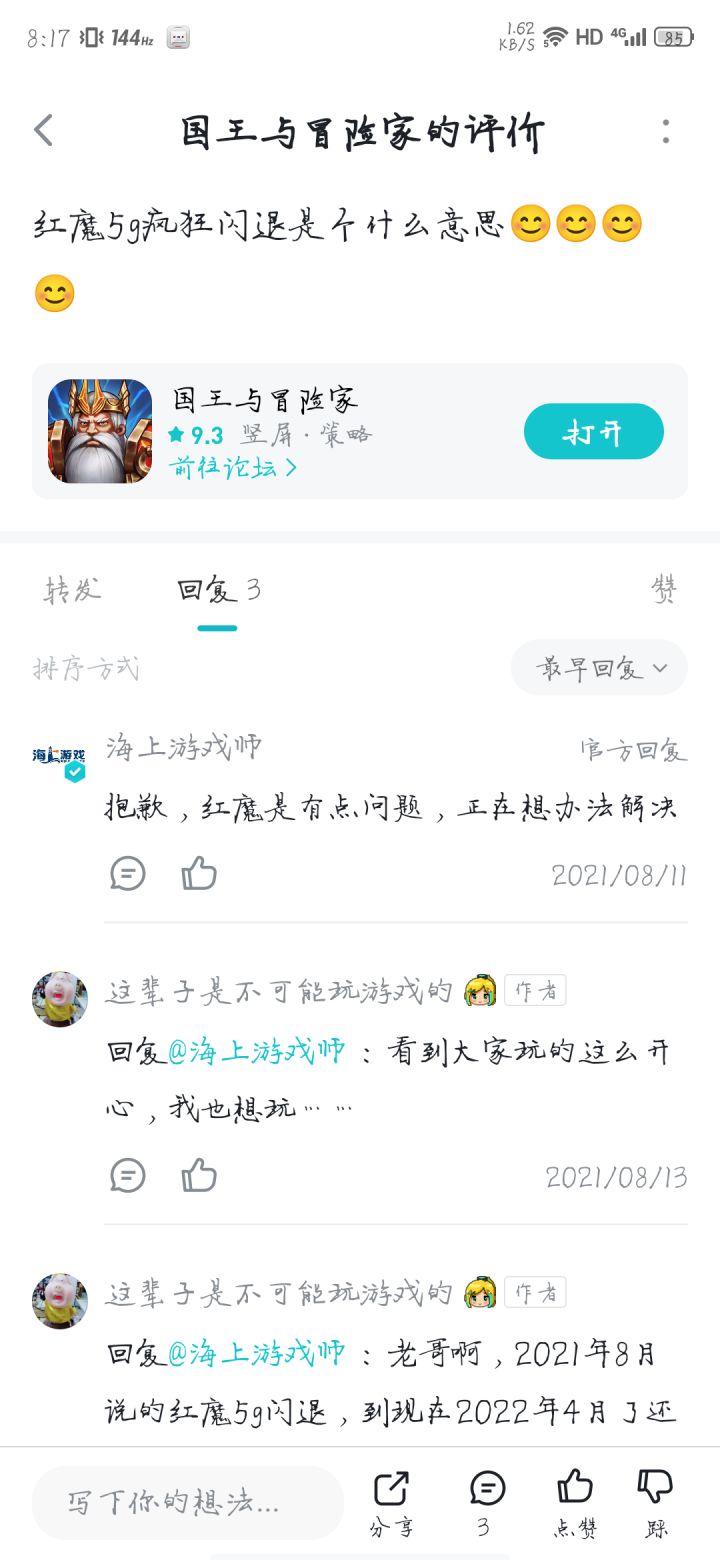 2021年8月反馈红魔5g闪退,现在都过去半年了啊,我还是闪退,就没个人管管吗