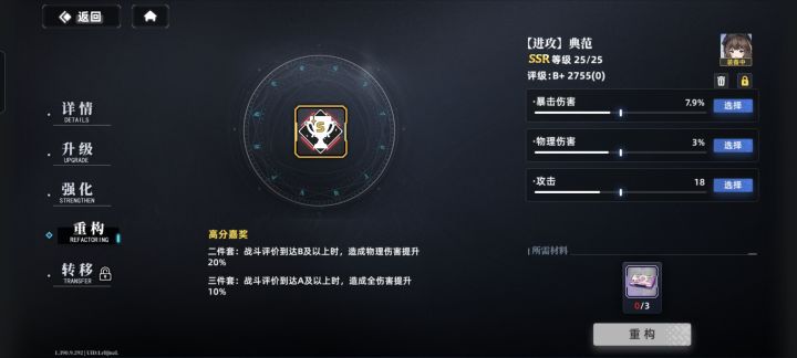 目前版本只有ssr刻印,没有开放升级以及ur刻印,所以主要了解一下套装效果以及角色分别是什么伤害就够用了()刻印搭配核心策略(角色技能详情界面可以看是什么伤害)一. 根据角色定位选择- 强袭:一般打的是斩击物理伤害(除了无铭)- 守护:目前三个角色,可以点开技能详情查看,卡特琳娜打的是穿刺物理,菲娅打击物理,真白斩击物理。- 歼灭:打的是穿刺物理伤害。-压制:打的是元素伤害。二.目前