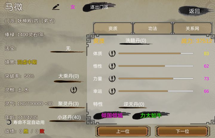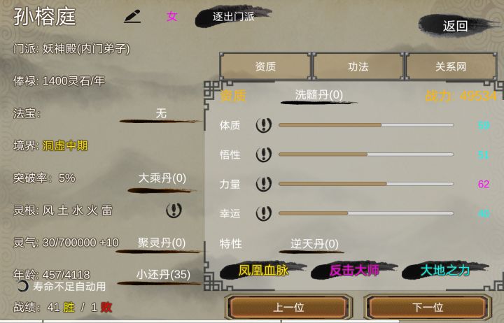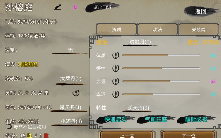 这套路无敌了啊,不看灵根,不看资质天赋,直接嗑药,50%成功率,没成功退了重进,再嗑药,成功了就等五十年,下一个继续嗑药。。。。不过这套路得和我一样的退出重进之后时间会倒退才行