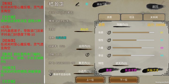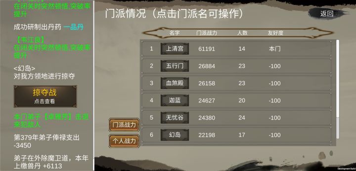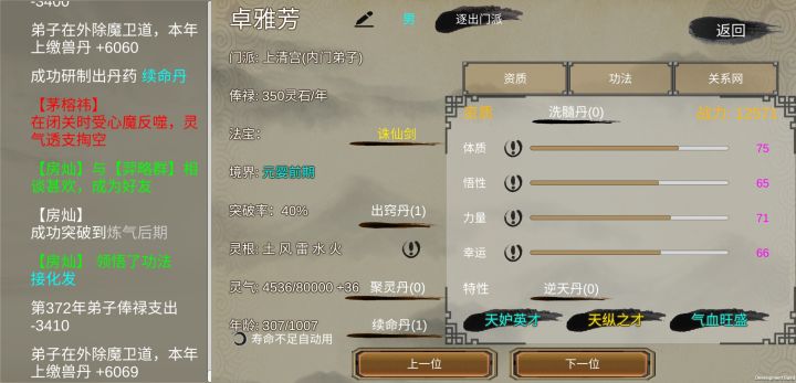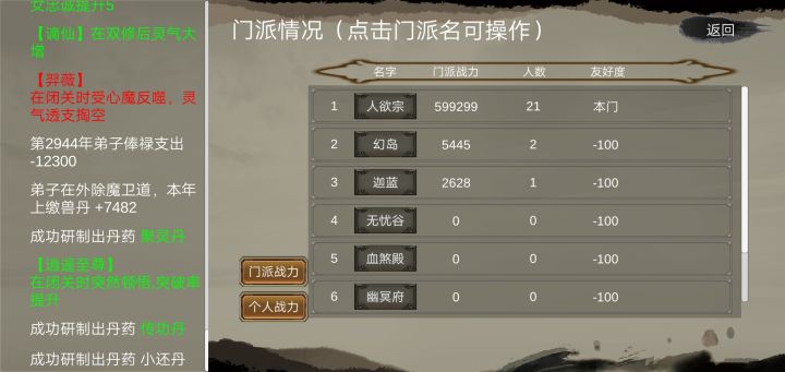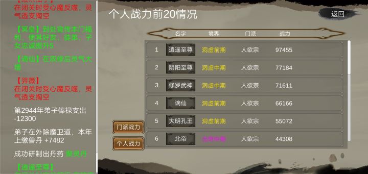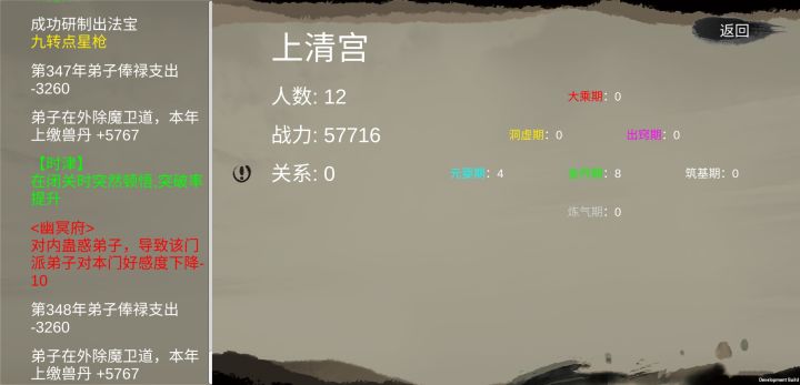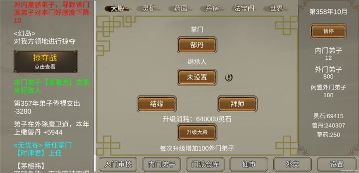 我玩通关了,来说一下攻略:刚开局最后选丹宗,这样炼丹快,一出来不着急只选单灵根,什么灵根都收,记住很重要的一点,千万不要得罪太多门派,否则会死的很惨,我打了四个宗门,到洞虚期就入不敷出了,轮番挨打,所以一开始就一直打一个宗门,和其他门派友好的不要低于零,前期不要花太多钱和其他门派搞好关系,不低于零就行,灵石全部攒起来把大殿等级先升满,还有炼丹不要去练高级丹,产量太慢,一直练二级丹,为什么练二级丹,因为二级丹一个月就可以生产出来,3.4.5级丹太慢,而且二级产聚灵丹,而且炼制起来非常快,十颗就可以把灵气不满,如果升级失败,下次成功率就会加百分之二,而且适合每个境界都是十颗就够了,比高等级丹炼制快多了,记住一直只能打一个宗派,游戏最高境界只有大乘后期,到大乘后期就没有了,培养的越多最后灵石就入不敷出了,游戏应该是没有结尾,关于世界打Boss往往遇见境界和自己最高境界一个级别的打不动,我试了一下怎么破,多培养几个境界一样的,不要一昧的去培养一个人升级,会出现打不过Boss,培养几个境界一样的去打,一次能打个百分之五十左右,等人物冷却到百分之六十,马上又去打,最多三到四次就能打死,千万不要得罪几个宗门,这样你会轮番被几个门派打,导致你的人物一直在冷却状态,没发去打boss,所以我一直是打一个门派,还有可以买别的宗派的人物,这个会降低宗门间的友好度,等把门派好友度都刷到百分之八十以上,看见别人资质好的还是要买过来,这样免得自己去培养,费时费力,买完别的宗派的人,就马上花钱去和这个门派搞好关系就可以了,不会挨打,以上就是通关攻略,码字不易,点个赞呗........