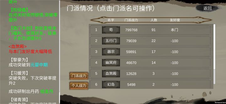 激进走血煞,前期按着一个宗门欺负,吸灵气,把炼器阁搞出来,橙器压境,也是养出一个出窍,欺负没出窍的宗门,多养几个出窍,疯狂欺负其他宗门,炼器阁搞了几把橙器就放着,重点还是在于炼丹,炼突破丹。相对于保守路线,前期不好过,容易被群殴,不过后期很轻松,就是打架,就是吸灵气,一下整个宗门就起去了。