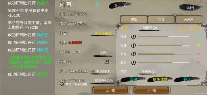 战力首选单灵根带天纵之才和另外两个加修炼速度天赋的,刷刷刷的等级就上去了。
