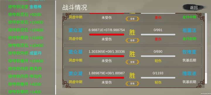 打架注意搞法宝紫色的宝玉,战后回血的,高手一人带一个,出窍以后扫荡宗门必备,超级爽,技能的话说实话无所谓,就走等级法宝压制阶。