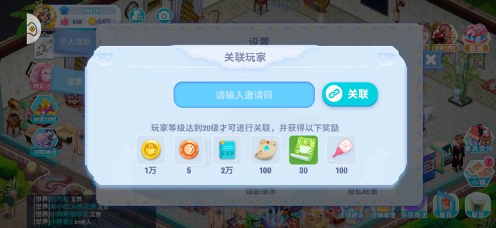 20级以上的朋友,点头像,设置关联玩家,输入2605970,可以领五个扭蛋币哦