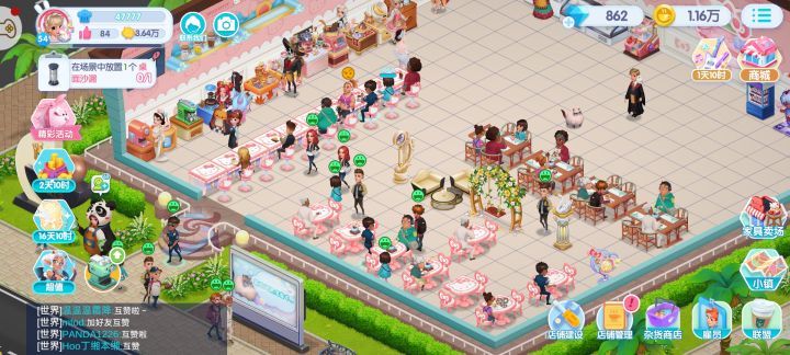 游戏整体玩法上是非常的丰富,像是收集各种可爱风格的家具装扮店铺、调制各种美味饮品、解锁风格多样的可爱店员们等等,MIKA在其中最喜欢的就是收集各种可爱风格的家具装扮店铺啦!不管是中国风、欧式贵族风、星座物语、沙滩假日还是这次的Hello Kitty主题统统都有,肯定有种风格是你喜欢的,我们能个性化布置的面积也就越来越大,像金沙滩地板、花篮小兔壁挂、古典天文镜、八仙2人桌等等千奇百怪,生动有趣小摆件