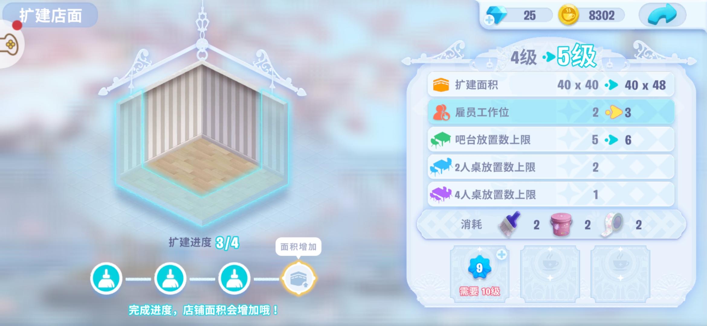 这个要怎么弄,扩建要三个工作位,但是扩建5级才有三个工作位