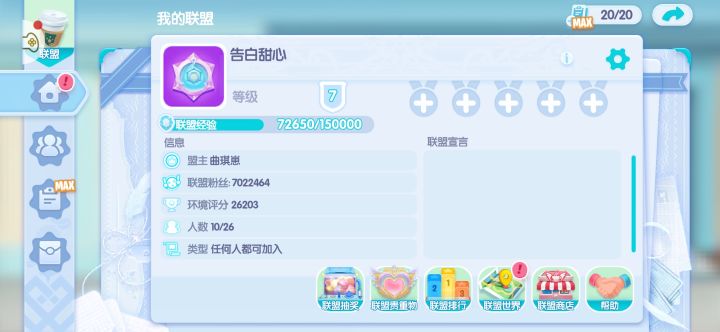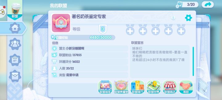 开间小店联盟收人~梨花飘雪区联盟:极乐蛮荒需要高活跃宝贝~详情可以看看联。盟公告~主要是我们区找不到人了,但是我们联盟贼活跃,而且我们联盟群都是漂亮妹妹和小哥哥,超有耐心沟通咋玩比较好,联盟有零氪也有重氪玩家,气氛活跃愉快。有兴趣的宝子来看看呀~