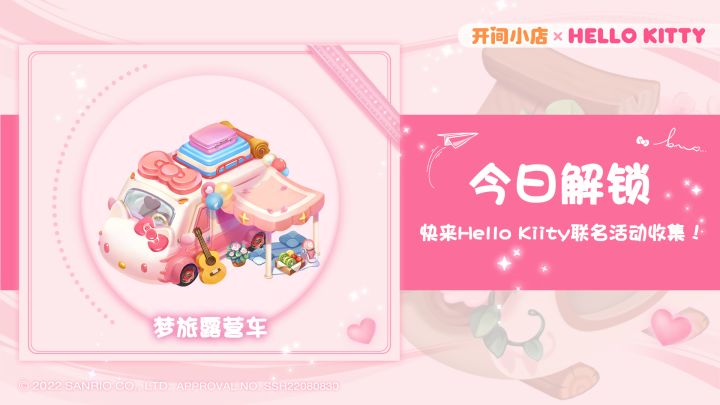 开间小店X Hello Kitty心愿之旅!全新野外露营主题装饰上线!《开间小店》联动三丽鸥家族Hello Kitty,精彩活动上线小店;Hello Kitty心愿之旅,八大活动齐至,萌趣童真•多彩小店,一起进入粉色小店童趣聚会吧! 设计师安妮在首期给店长们代理Hello Kitty主题店铺的装饰后,全新的联动设计家具图也更新上线!全新「野外露营」主题联名家具今日上线!参与Hello Kitt