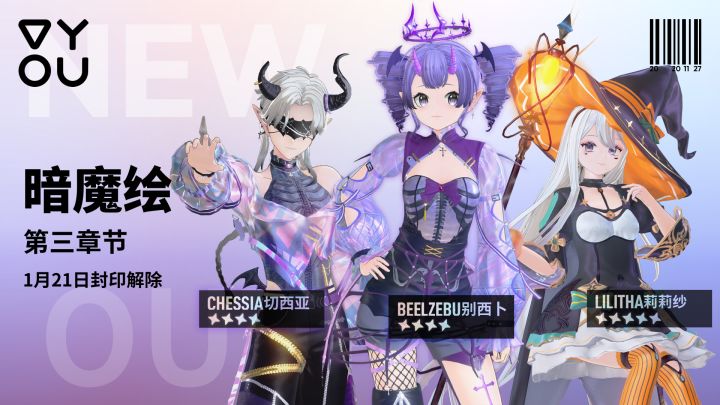 “暗魔绘”第三章节即将开启,下周封印解除!堕天使“别西卜”主题套装将于1月21日上线Vyou微你!同时,“暗魔绘”服装配套主题动作也将于1月21日上线,敬请期待!