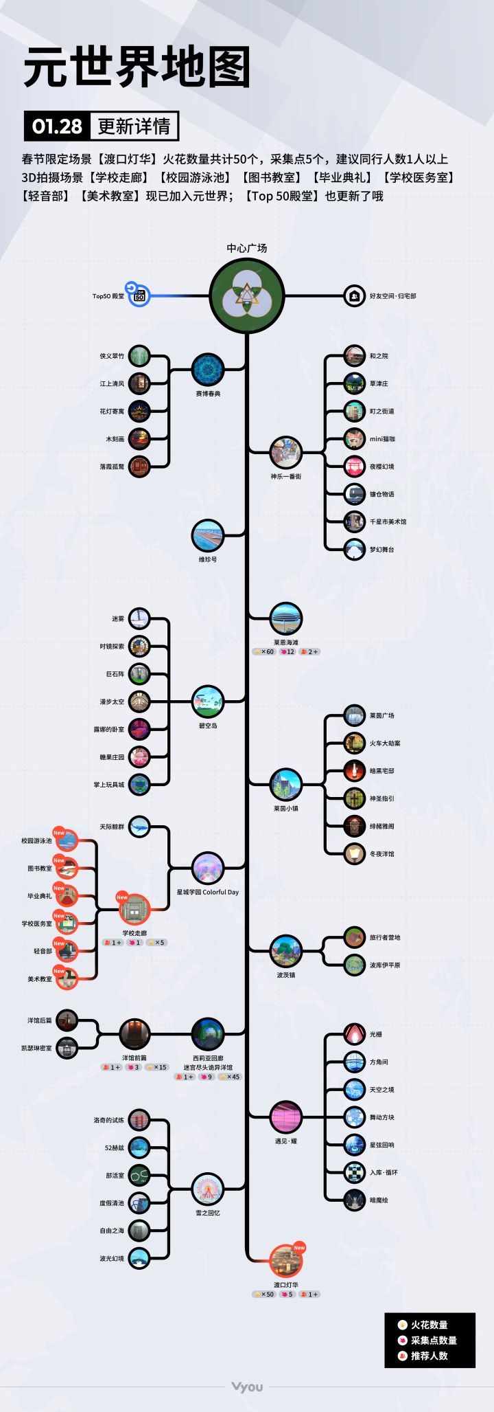 1月28日的春节更新预告来啦!为了大家能够在Vyou度过一个与众不同的虎年春节,小v特别准备了成吨的更新内容,包括新服装、新配饰、新地图系列,还有全新的PreciousClove主题联名服装等你!现在就来看看都有什么内容吧!- Vyou与PreciousClove共同制作的主题联名服装“貔貅聚财”即将于春节前与你见面!如果你喜欢这套衣服的话一定要将它收入囊中哦!- 春节中式风格套装“昭华晴雪