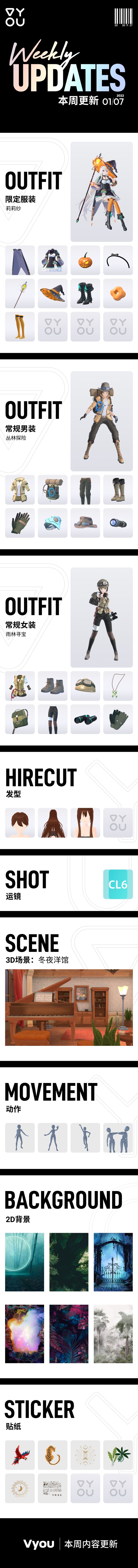 1月7日更新预告来啦!✨ 万众期待的魔女套装“莉莉纱”限时(1月7日—2月7日)上架商店,神秘魔法空降,赶快扮演可爱魔法少女,过一个奇幻的冬季吧!✨ 丛林冒险主题男女套装“丛林探险”“雨林寻宝”上架商店,探索未知自然,会有什么新奇的发现呢?✨ 暖炉、红墙、欧式豪宅!欧式场景“冬夜洋馆” 同步上架自由拍摄和元世界,快约上好友一起来炉火旁喝咖啡吧!✨ 元世界大厅内的“Top50殿堂”迎
