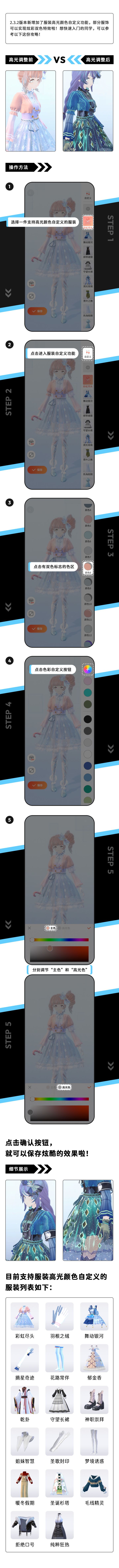 Vyou的2.3.2版本已经在各大应用商店全线更新啦!新版本修复了搜索不显示结果的BUG,同时还新增了服装高光炫彩颜色自定义功能,部分服饰可以通过这个新功能实现炫彩双色特效。未来,支持高光颜色自定义的服装也会越来越多,要记得留意自己新买的服装有没有开放这个选项哦!接下来,小v就教一下大家这个炫酷的新功能应该怎样使用!