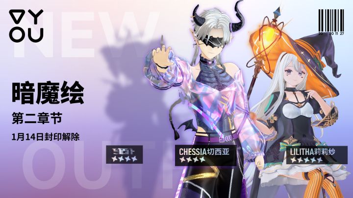 暗魔绘第二章节即将开启,1月14日封印解除!小心暗夜魔法使切西亚,可能会在某个时空,突然潜入你的梦乡,然后……第三章节近期即将上线,敬请期待。