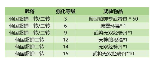 1. 经验加倍活动【活动时间】2026年1月19日 12:00 ~ 1月20日 12:002026年1月26日 12:00 ~ 1月27日 12:00 2.武将升星活动为回馈各位玩家的厚爱,助力大家在三国冒险之旅中披荆斩棘,我们特别推出 **“升星计划” 活动 **,海量福利助力战力飙升,快来一探究竟! ①倾国貂蝉强化活动【活动时间】2026年1月15日 维护后 ~ 2026年1月