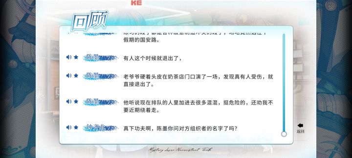 还没玩完,但是提几个细节问题1.有好几处语音与文本不符(如图一内的19,语音是17)2.有几处肯否不明(图二不要绕着走)3.知否的回答,不管我选的是什么,后面再次出现的好像是固定的,就反正与我选的不一样