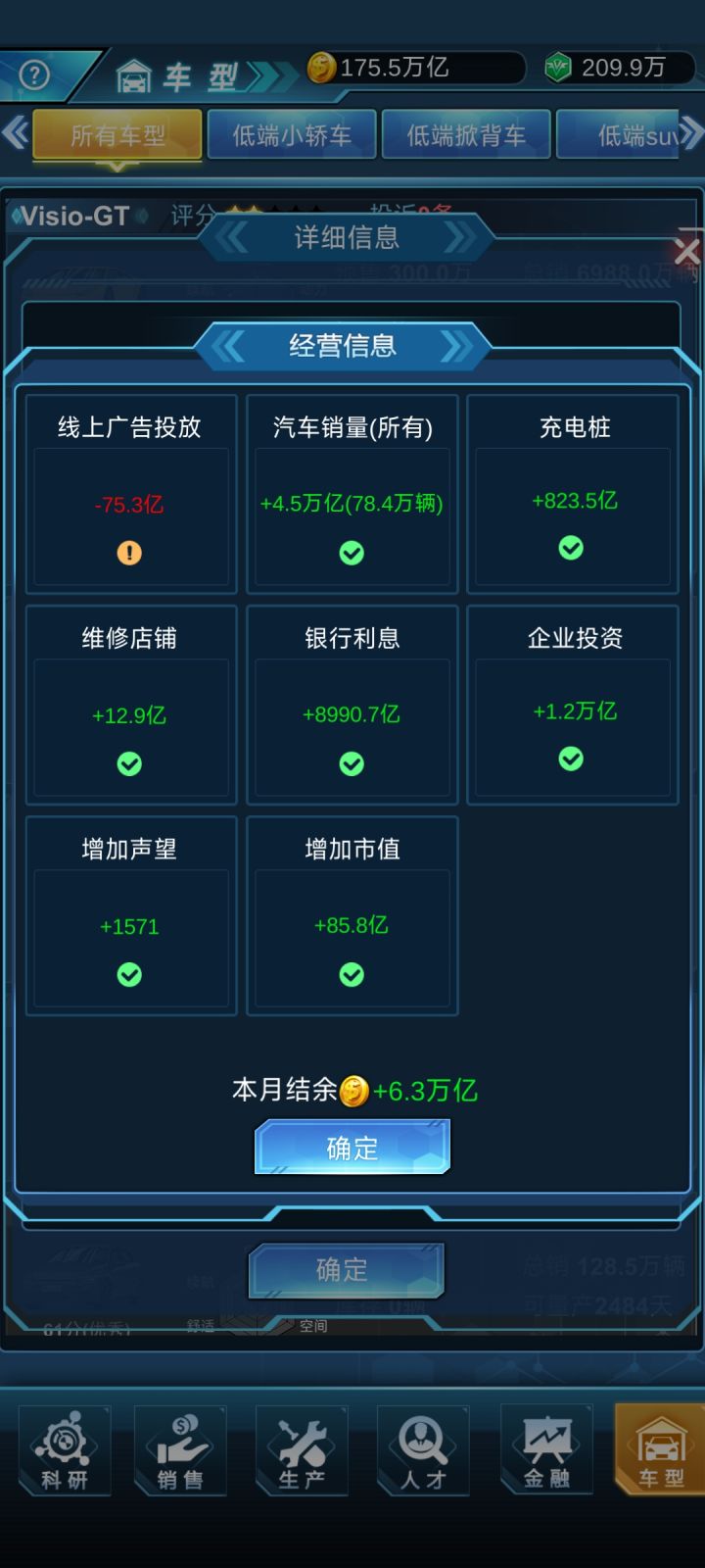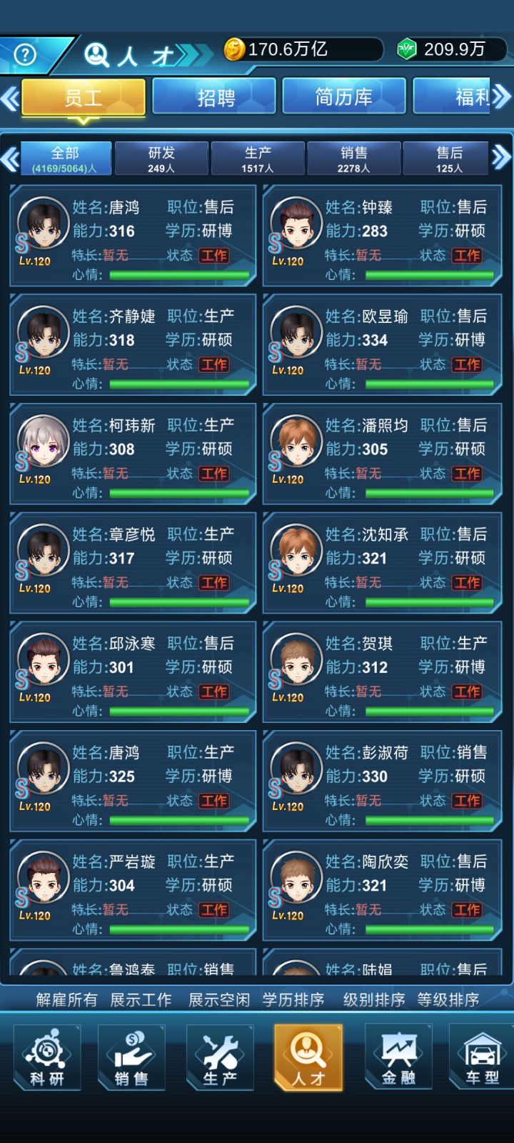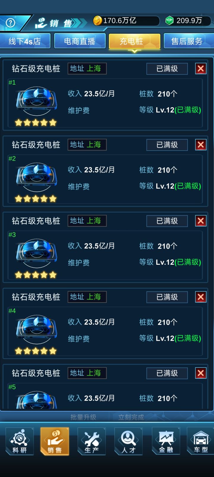 还有s等级的人一开始不要,跟着那个左边的公司升级的条件走,不要早点,还有注意五星企业之前那个售后的人全不要,充电桩售后服务全不要。其他就依葫芦画瓢没啥意思了。那个投资没卵用,要钱还不如存钱拿利息,后面钱没卵用就是等卖的车够才能升级