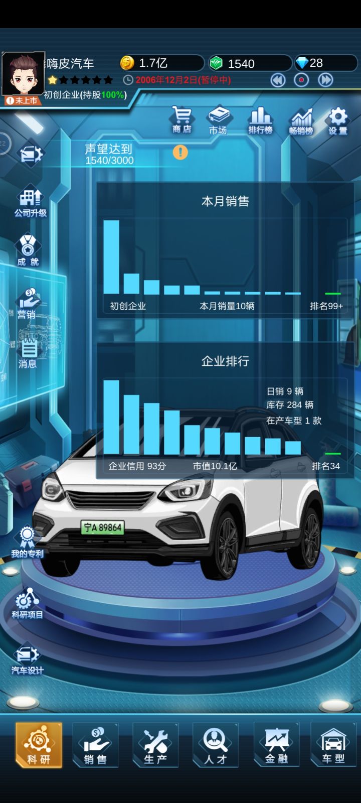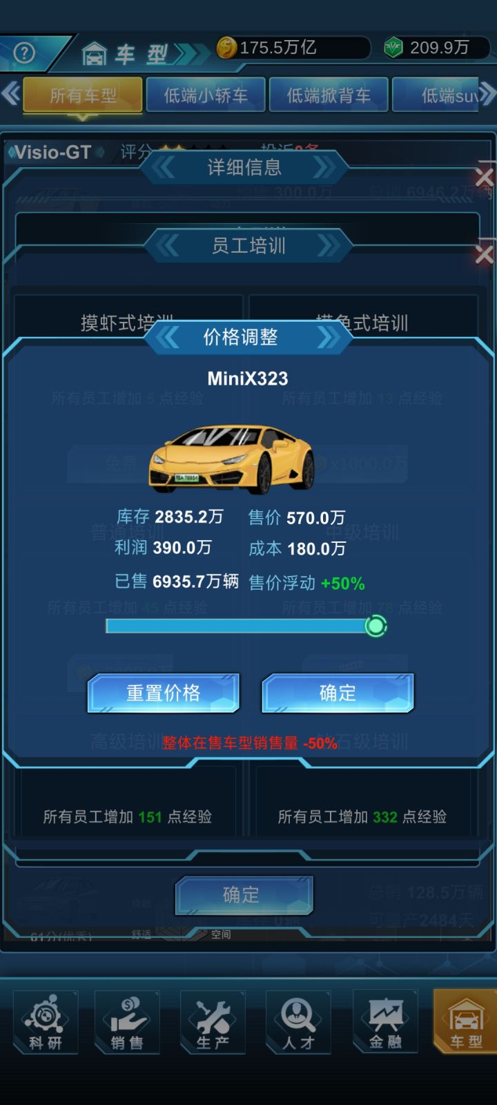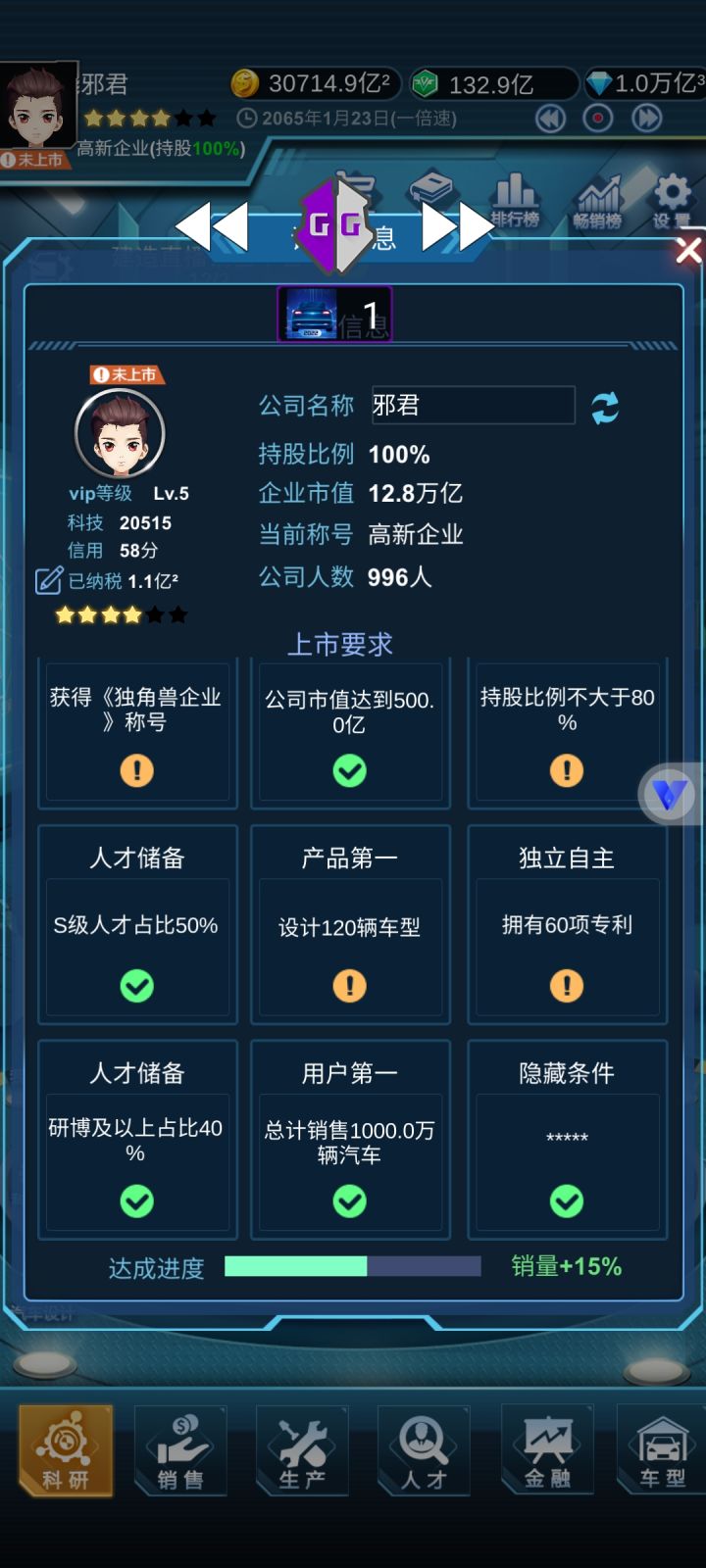 还有s等级的人一开始不要,跟着那个左边的公司升级的条件走,不要早点,还有注意五星企业之前那个售后的人全不要,充电桩售后服务全不要。其他就依葫芦画瓢没啥意思了。那个投资没卵用,要钱还不如存钱拿利息,后面钱没卵用就是等卖的车够才能升级
