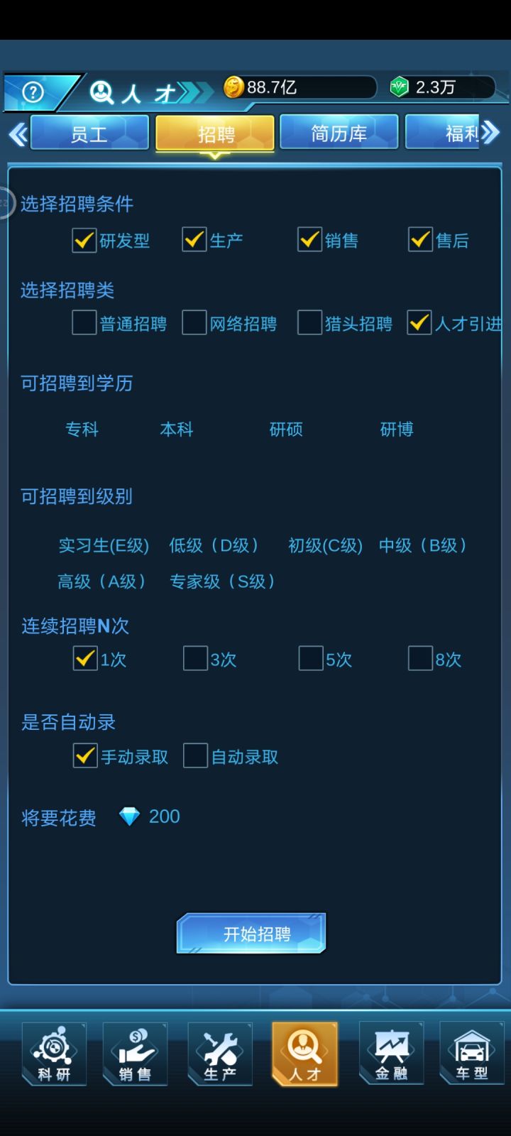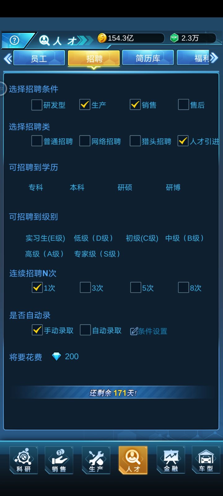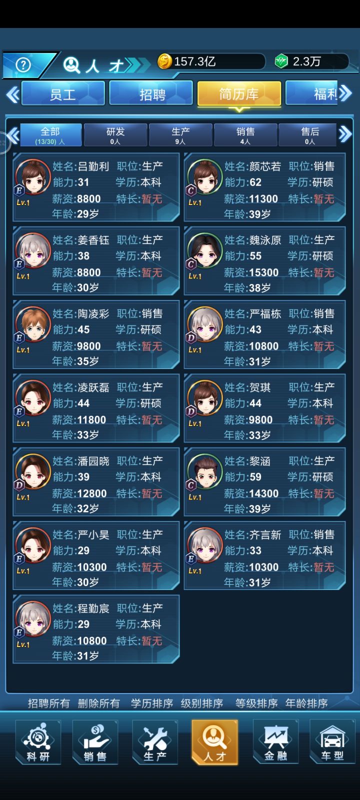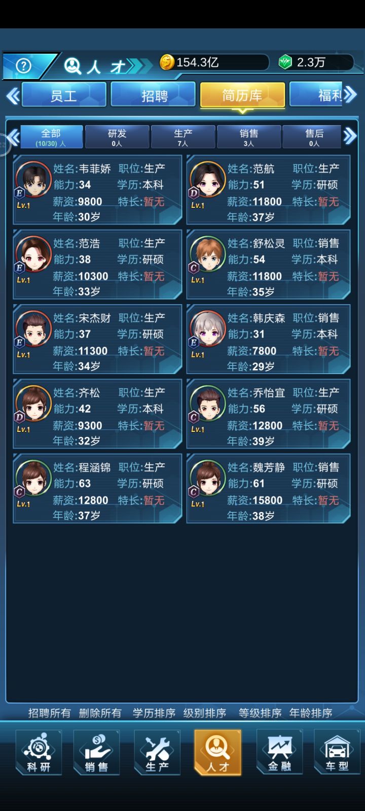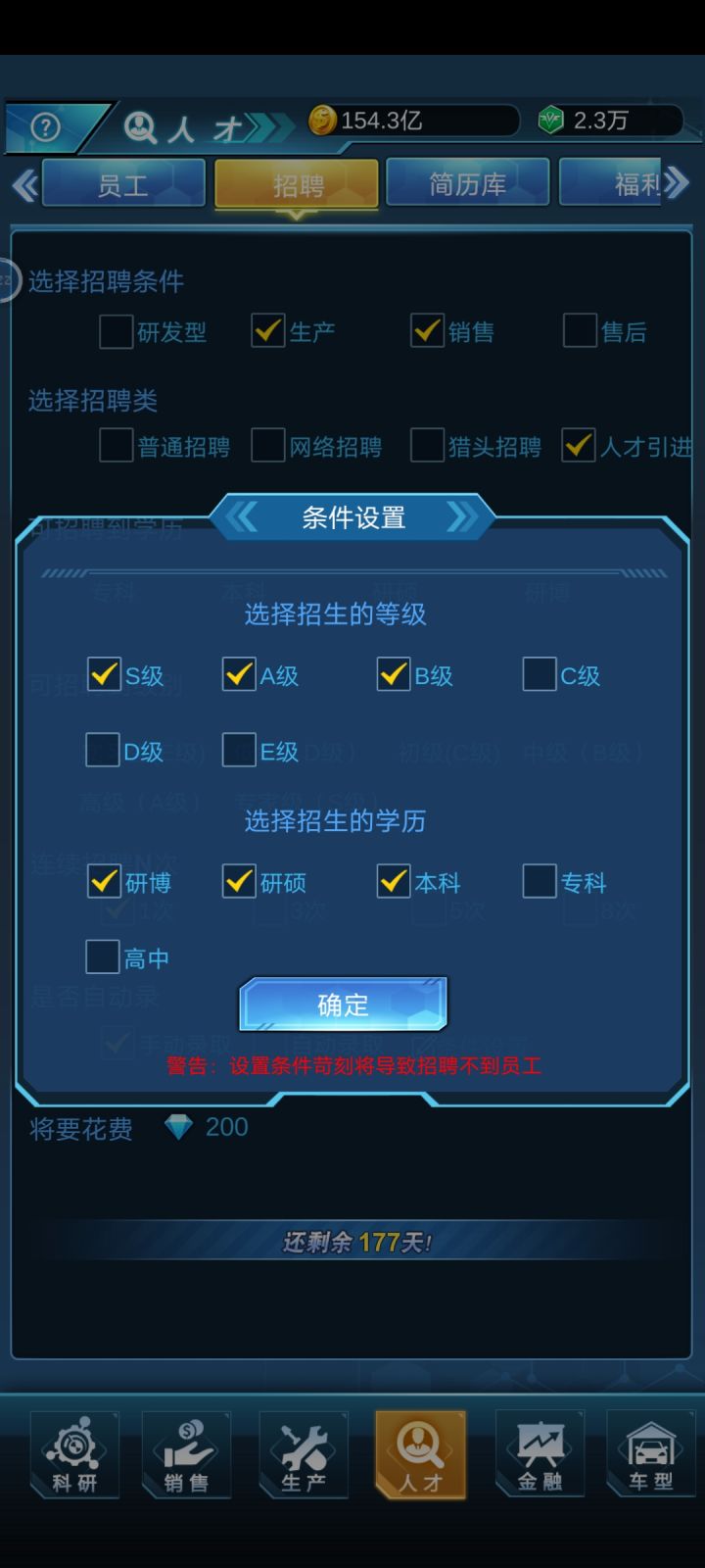 浪费我200钻石去得出的结果,招聘条件无用,设置了招募SAB,学历本科及以上,结果出来了什么?全他喵EDC本科及以上,难不成SAB一个本科的都没有