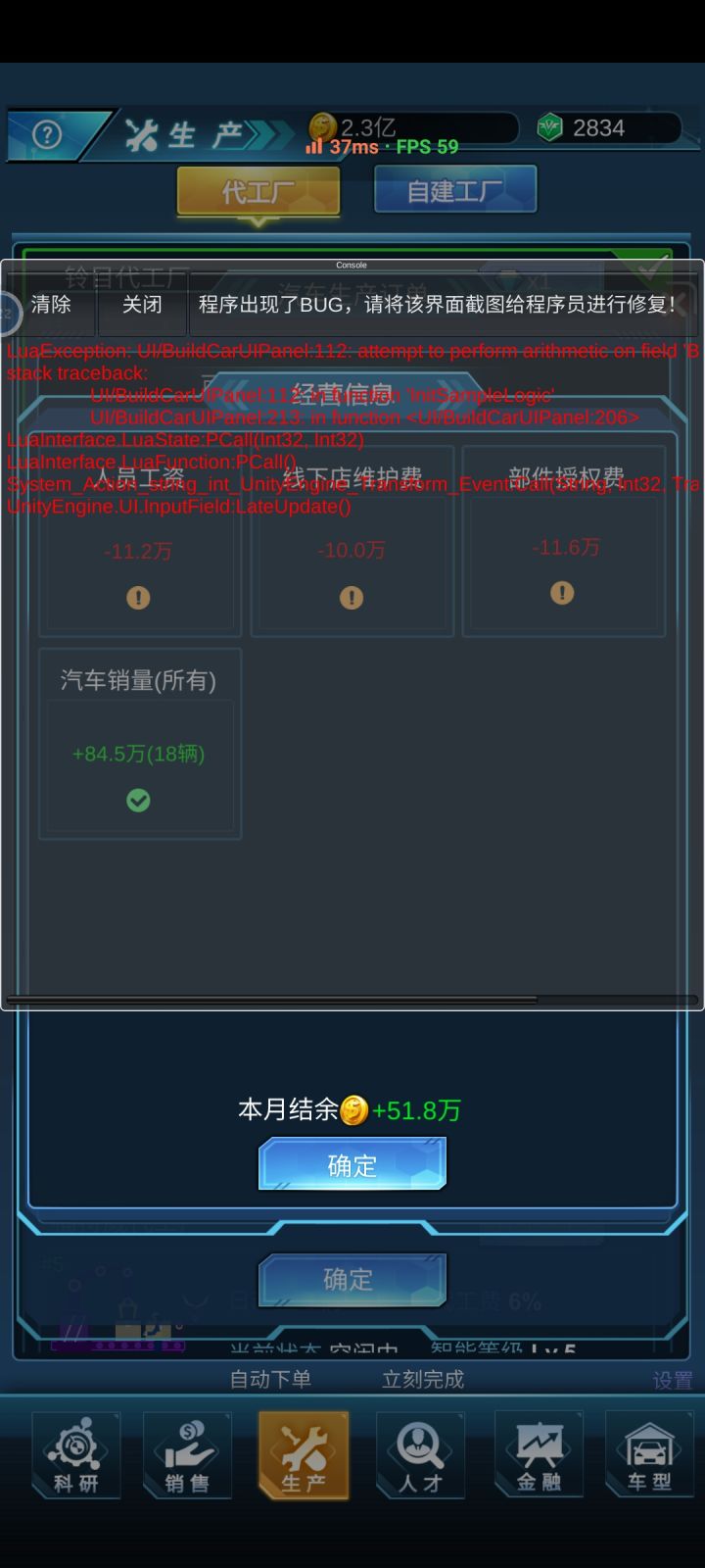 天才模式,重庆开了初级规模店,在代工生产时候出现了bug如下