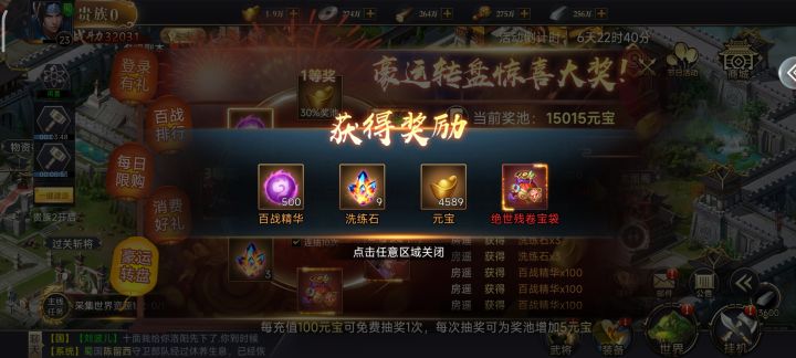 138服东京 热嘻哈,冷不丁又来一次百战转盘,才发现元宝不够多