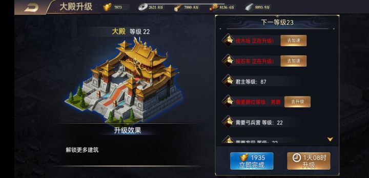 144 不服就充钱 202211.15签到打卡 大殿升级,可以解锁建筑等级