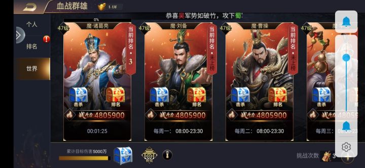 【签到】109 [1]诸葛亮 打boss要排名和最后一击两个奖励都拿。