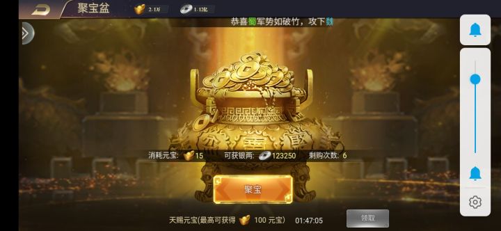 【签到】109 [1]诸葛亮 每天打黄巾入侵,得元宝。